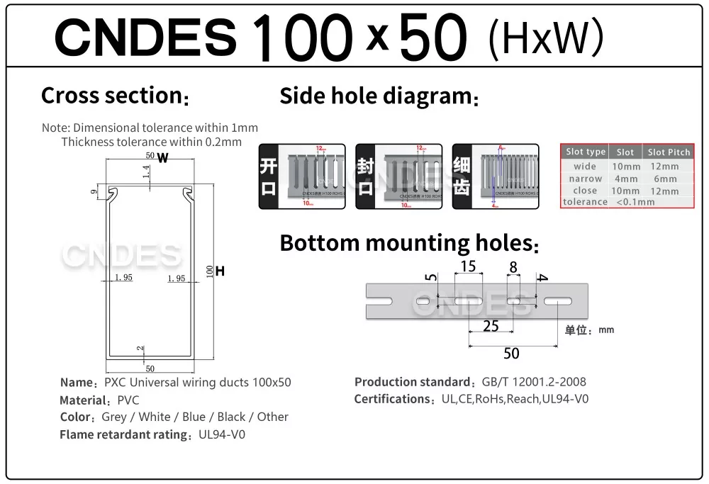 De op maat gemaakte 100×50 PVC-kabelgoten van CNDES zijn een praktische en efficiënte oplossing voor kabelbeheer. We hebben dit formaat kabelgoot ontwikkeld om capaciteit, flexibiliteit en kosteneffectiviteit in evenwicht te brengen, waardoor het een van de meest gebruikte modellen is in distributiepanelen, commerciële gebouwen en industriële faciliteiten.