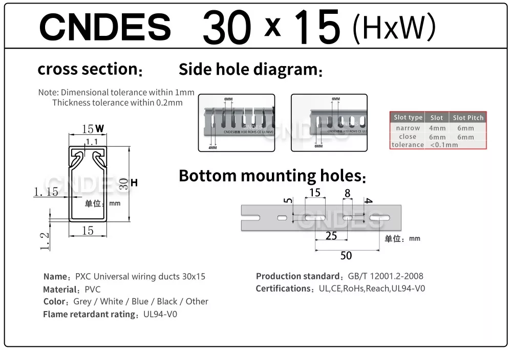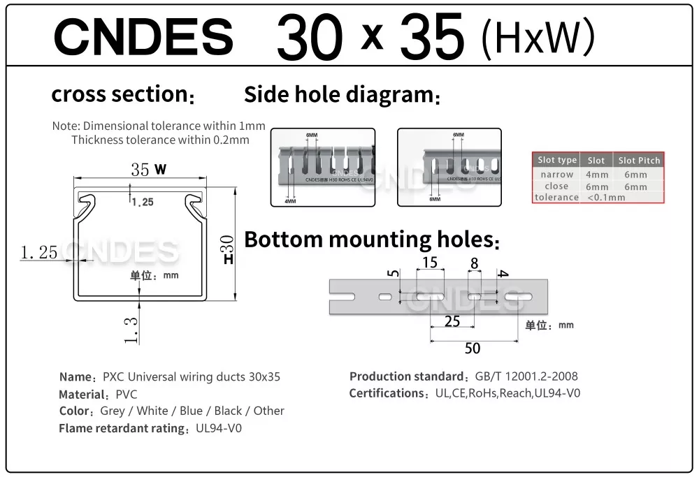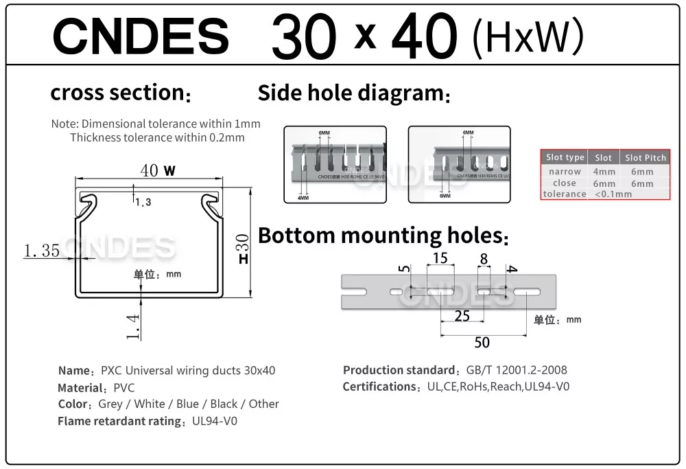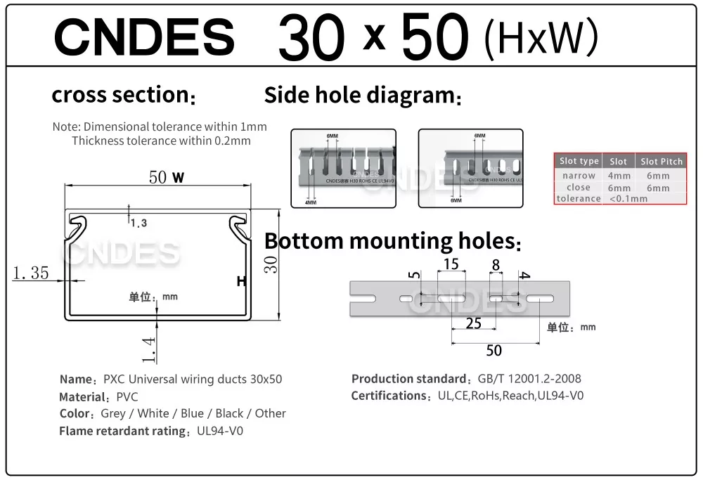De op maat gemaakte PVC-kabelgoot met 30 mm hoogte en sleuven van CNDES is ontworpen voor efficiënte, compacte en veilige kabelgeleiding in een verscheidenheid aan industriële, commerciële en residentiële omgevingen. Dit kanaal is ideaal voor toepassingen met beperkte ruimte en zorgt ervoor dat uw bedrading georganiseerd, beschermd en gemakkelijk toegankelijk is.