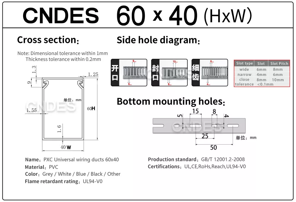 Als ervaren, op maat gemaakte 60×40 vlamvertragende PVC-bedradingskanaalfabriek in China, zorgt CNDES voor: