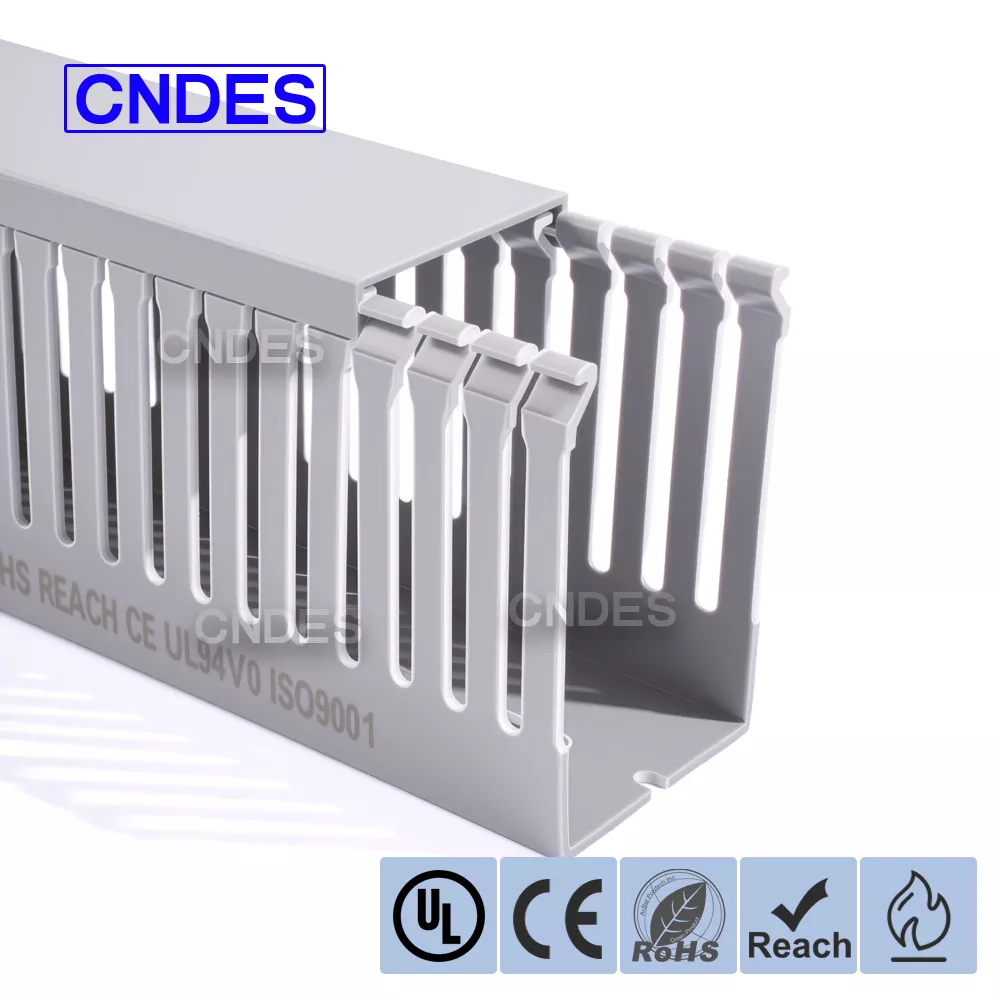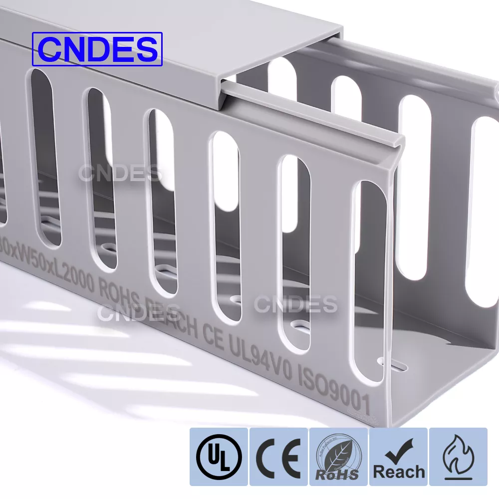 CNDES is een professionele fabrikant van PVC-kabelgoten met sleuven in China. Hier introduceren we onze 80×50 PVC-paneelkabelorganizer met sleuven, waarbij 80*50 mm een kabelgoot vertegenwoordigt met een hoogte van 80 mm en een breedte van 50 mm.