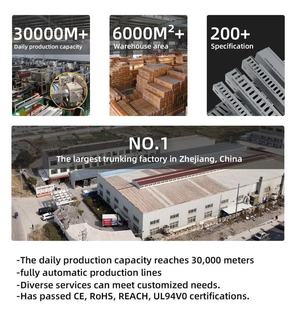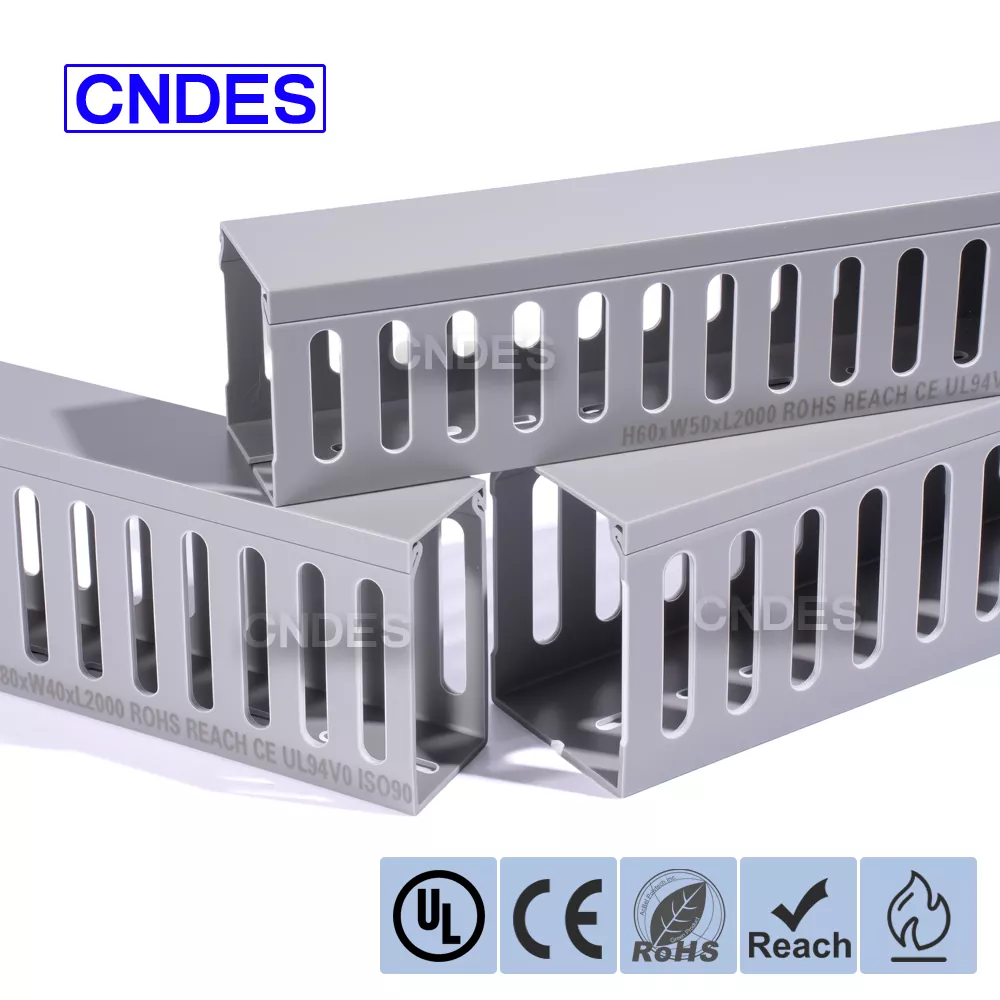 Het draadkanaal met nauwe gleuf van CNDES is gemaakt van een gepatenteerde PVC-formule. Het heeft meerdere gezaghebbende certificeringen doorstaan en beschikt over sterke fysieke eigenschappen en voortreffelijk vakmanschap. Met meer dan 60 specificaties op voorraad kunt u met vertrouwen winkelen.